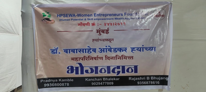 HPSEWA Women Entrepreneurs Foundation organized a Bhojandan (food donation) Seva on the evening of 5 December 2025 at Chaityabhumi, Mumbai, as part of the observance of Dr. Babasaheb Ambedkar Mahaparinirvan Din.